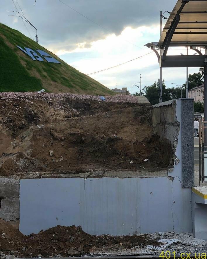 В Киеве, после капитального ремонта,обвалился кусок стены на железнодорожной станции “Святошин”. Фото, на котором видно осыпавшийся грунт, выложили в паблике “Буча Найкраще Місто”.