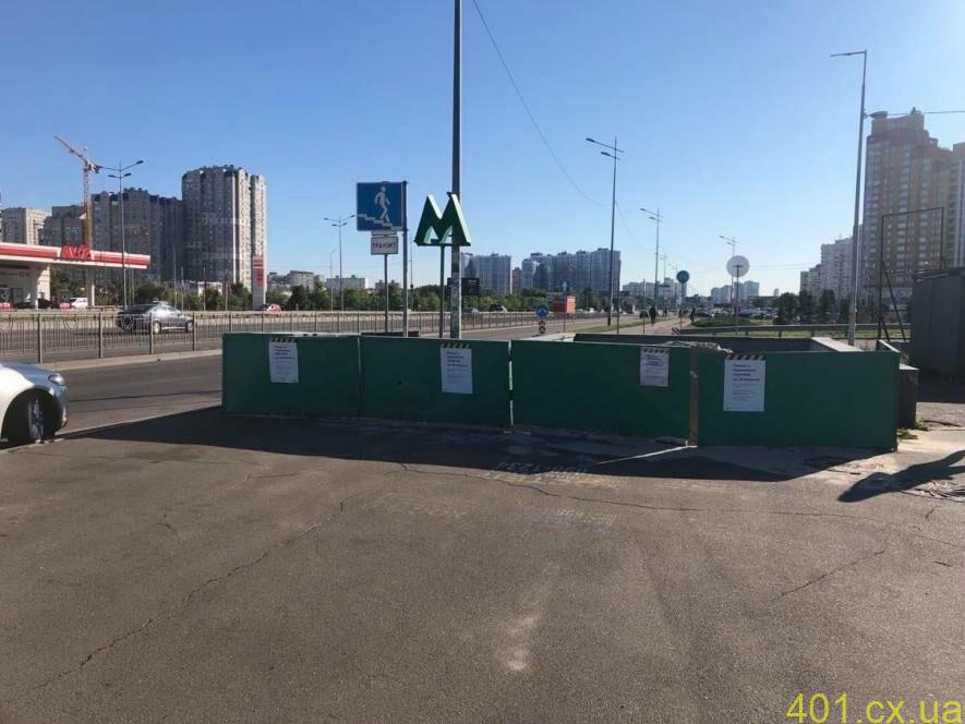 Один из выходов на станции метро «Позняки», который ведет к проспекту Бажана, закрыли на ремонт. Место проведения работ ограждено предупреждающей лентой, а табличка с объявлением гласит, что ремонт будет вестись до 18 сентября.